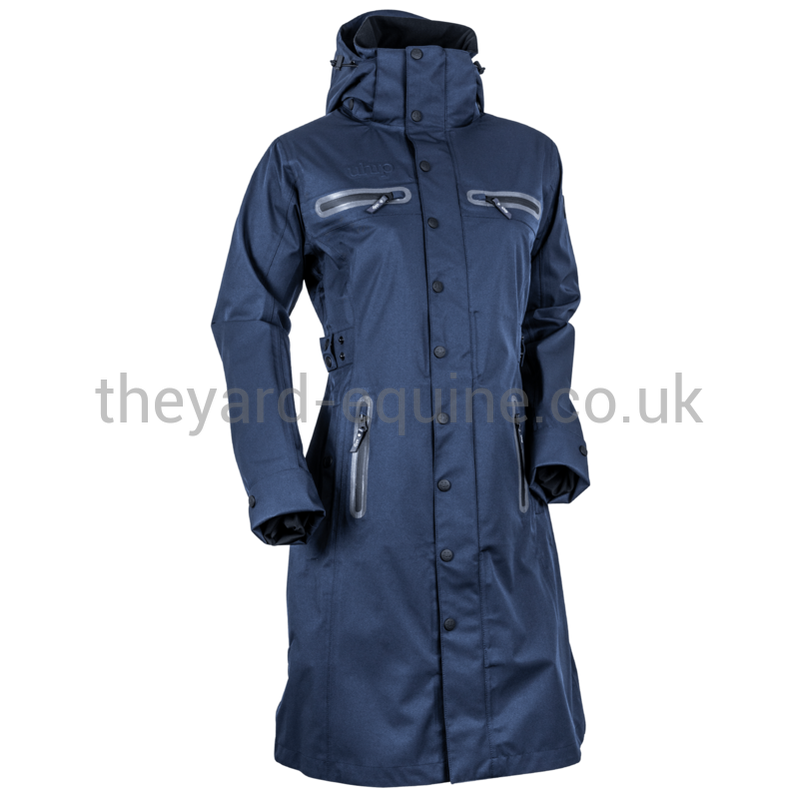 The UHIP Mid Length Trench is a multifunctional, lightweight riding coat has a feminine yet classic style. The coat is available in two lengths - this MID version sits around half way up the leg/just above the knee depending on your height.  It is recommended over the LONG version for the more petite rider (5 ft 4 or under from our experience) or those who prefer a shorter length of coat.  Offering protection from rain and wind, both in the saddle and around the stable. With a high water resistance rating. Since the coat is unlined, you can use it all year round by regulating what you have underneath.